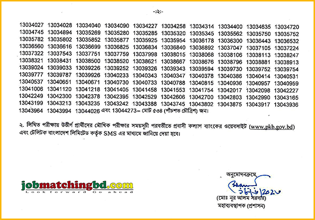 প্রবাসী কল্যাণ ব্যাংক এর ১-০৬-২০২২ তারিখে নিয়োগ বিজ্ঞপ্তি মোতাবেক বিগত ১৯ মে ২০২৩ তারিখে অনুষ্ঠিত লিখিত পরীক্ষায় অংশগ্রহণকারীদের মধ্যে ৫৩৪ জন শিক্ষার্থীর মৌখিক পরীক্ষার জন্য নির্বাচিত প্রার্থীদের তালিকা প্রকাশ