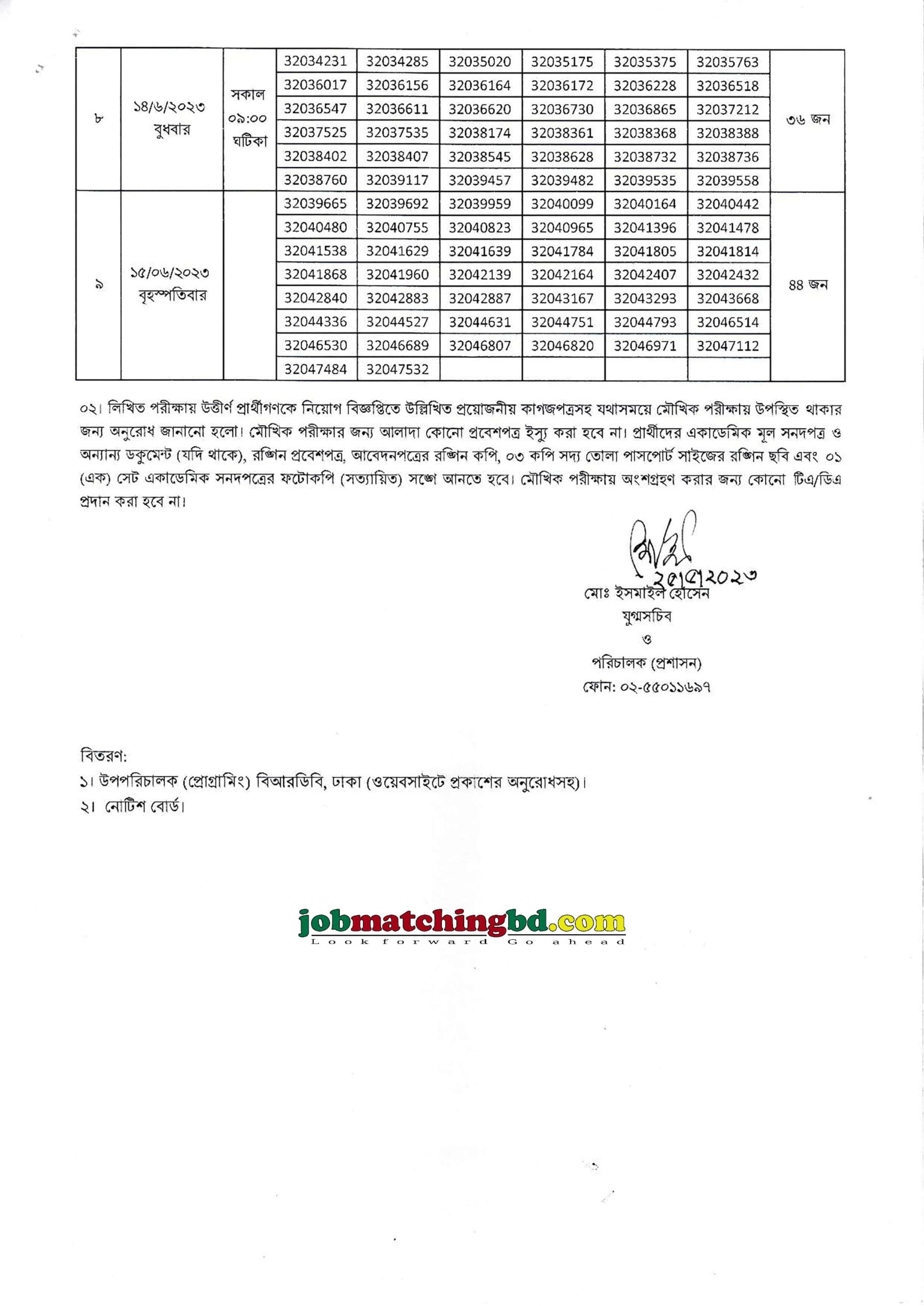 মৌখিক পরীক্ষার তারিখঃ ০৪-০৬-২০২৩ তারিখ থেকে- ১৫-০৬-২০২৩ তারিখ পর্যন্ত