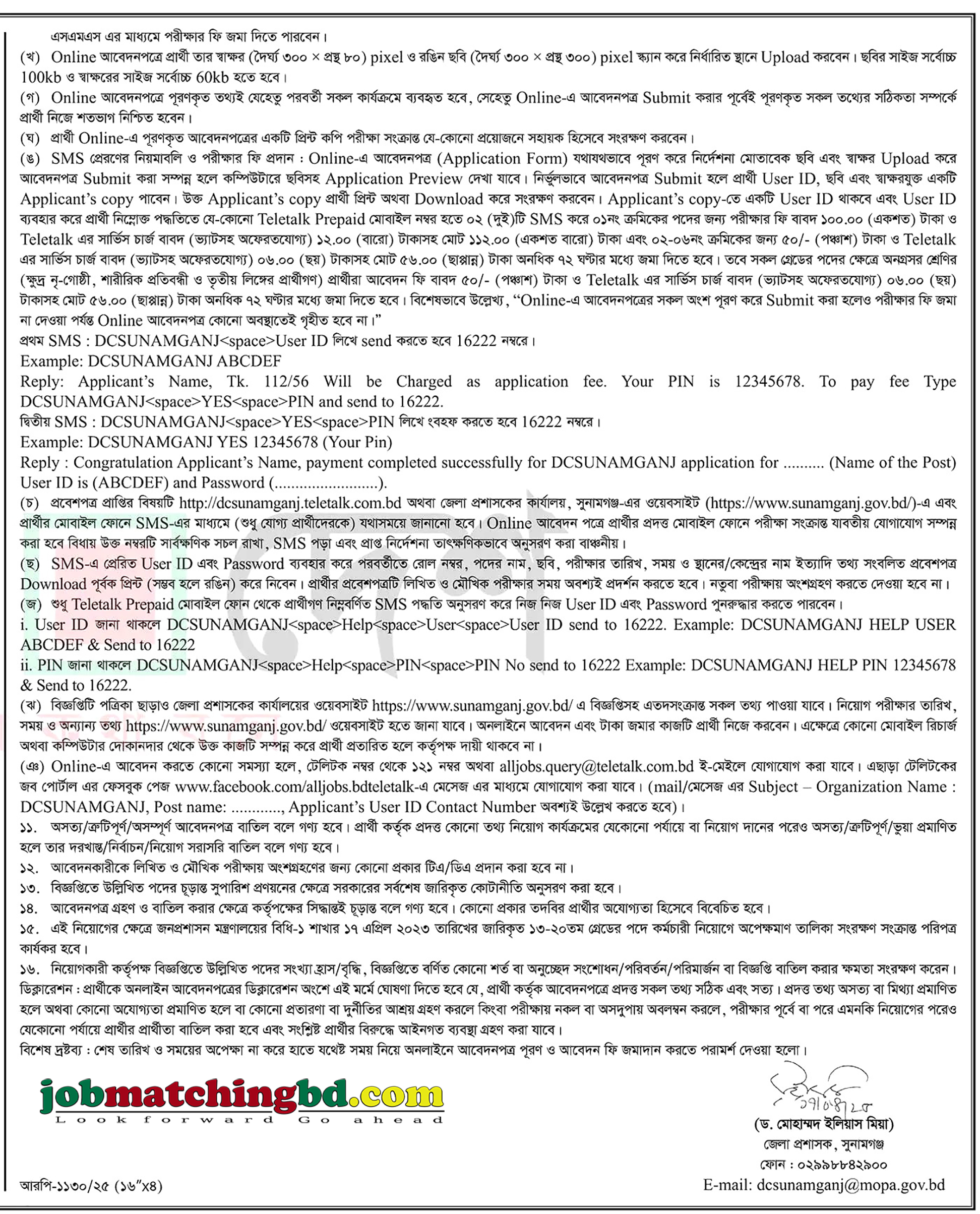 আবেদন প্রক্রিয়া: আগ্রহী প্রার্থীদের http://dcsunamganj.teletalk.com.bd ওয়েবসাইটের মাধ্যমে আবেদন করতে হবে।