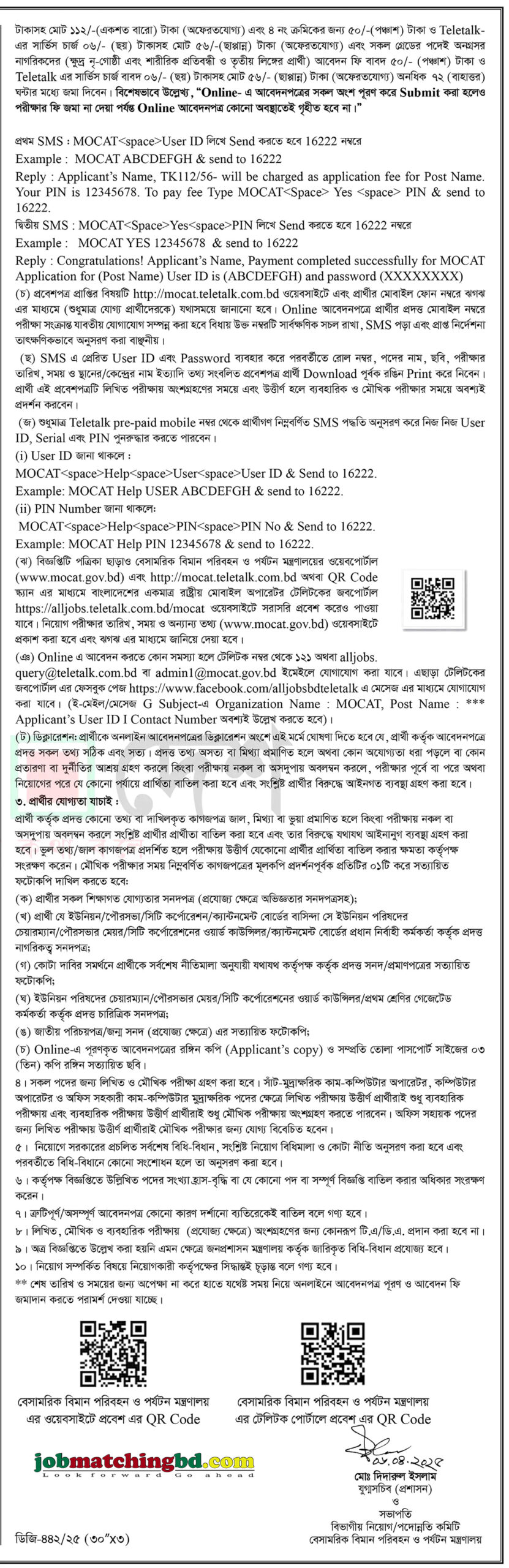 আবেদন প্রক্রিয়া: আগ্রহী প্রার্থীদের http://mocat.teletalk.com.bd ওয়েবসাইটের মাধ্যমে আবেদন করতে হবে।