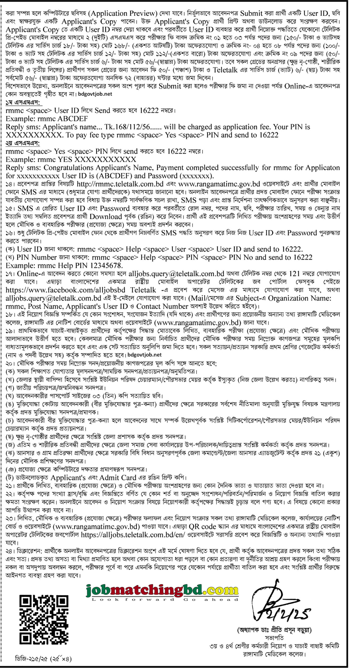 আবেদন প্রক্রিয়া: আগ্রহী প্রার্থীদের http://rmmc.teletalk.com.bd ওয়েবসাইটের মাধ্যমে আবেদন করতে হবে।