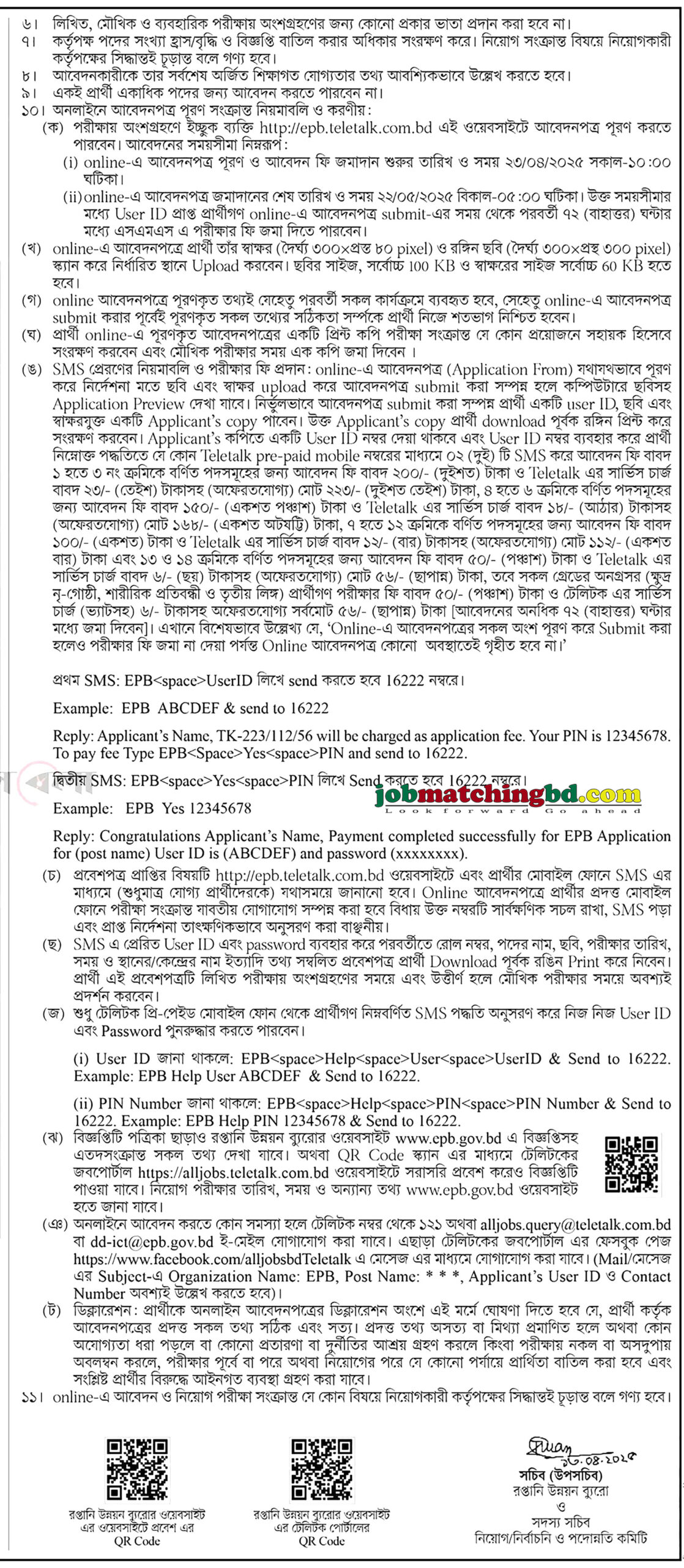 আবেদন প্রক্রিয়া: আগ্রহী প্রার্থীদের http://epb.teletalk.com.bd/ ওয়েবসাইটের মাধ্যমে আবেদন করতে হবে।
