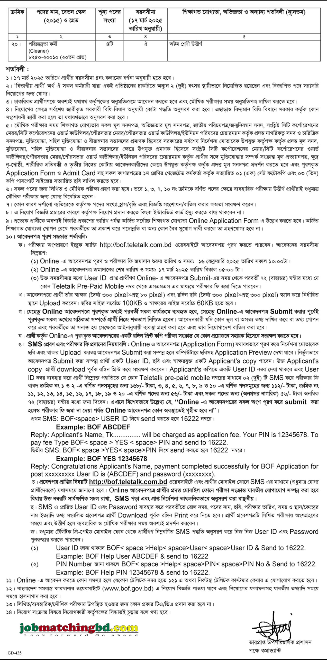 আবেদন প্রক্রিয়া: আগ্রহী প্রার্থীদের http://bof.teletalk.com.bd ওয়েবসাইটের মাধ্যমে আবেদন করতে হবে।